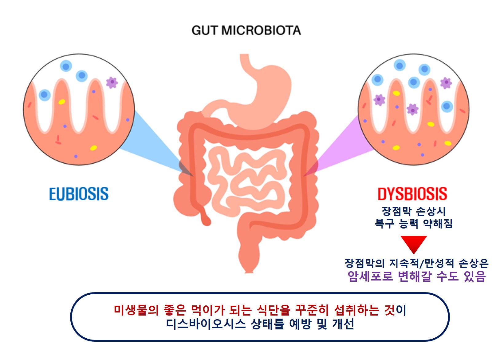 최근 연구에 따르면 미생물의 좋은 먹이가 되는 식단을 꾸준히 섭취하는 것이 디스바이오시스 상태를 예방 및 개선할 수 있다고 합니다.