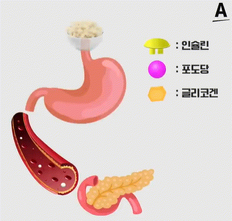 에너지를 만드는 역할을 하고 남는 포도당은 근육에 글리코겐의 형태로 저장하고 간에도 일부 저장이 됩니다. 이때 식사를 너무 많이 하거나 단당류를 많이 먹게 되면 지방이 만들어지는 쪽으로 작용을 하게도 됩니다.