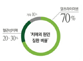 - 치매를 유발하는 원인이 되는 질환들은 약 70여 가지가 있습니다.