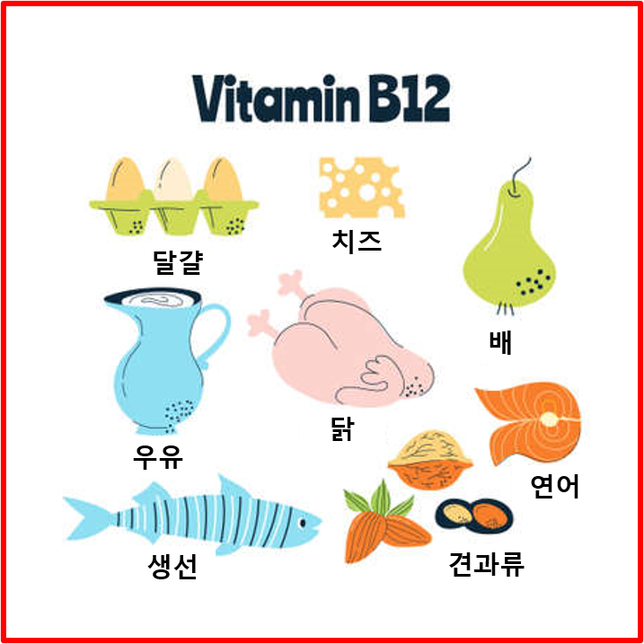 비타민B12 코발라민은 엽산을 도와 적혈구를 만들기 때문에 붉은 비타민이라고도 불리웁니다. 엽산과 비타민B6와 함께 호모시스테인 수치를 낮춰 혈관을 건강하게 유지될 수 있도록 도와줍니다. 비타민B12는 나이가 들수록 그 흡수력이 떨어지기 때문에 중장년의 경우에는 의식적인 섭취가 필요한 대표적인 비타민B군입니다.