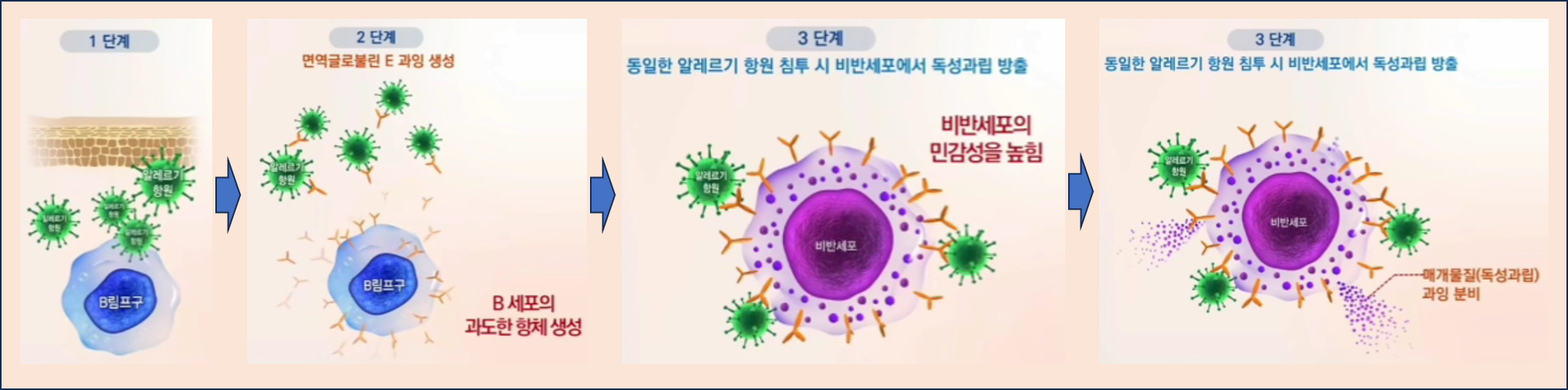 그 결과로 콧물, 코막힘, 가려움증 등의 증상이 나타나게 됩니다.
